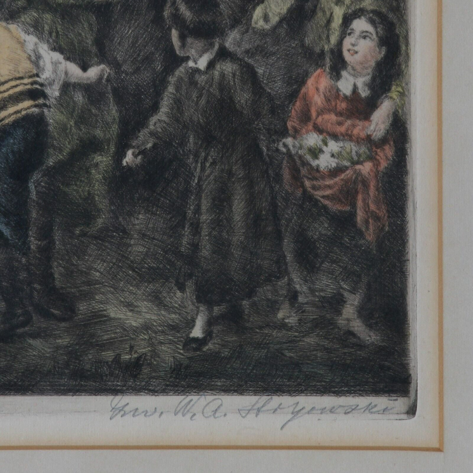 A Jewish Wedding in Galicia by Wilhelm August Stryowski Signed Colored Engraving
