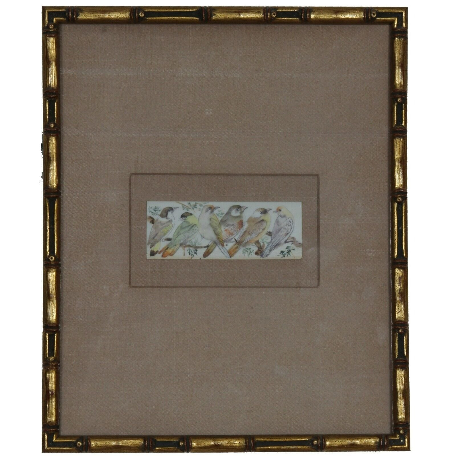 Gorgeous Painting on Wood Six Birds Framed Adorable 9.5 x 11.5"