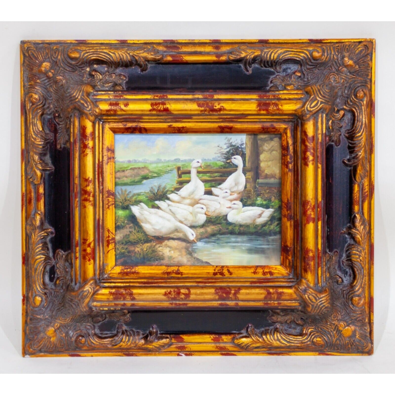 Gorgeous Untitled Oil Painting on Board of Ducks with Gilt Baroque Framed