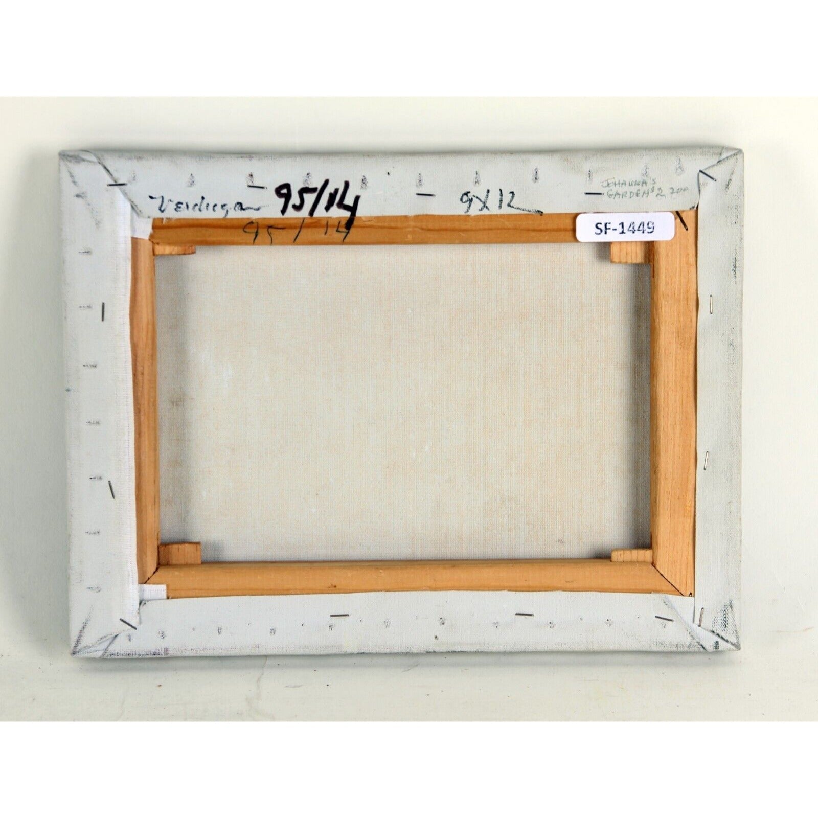 This beautiful painting titled "Johanna's Garden" by artist Verdugo features a stunning portrayal of a garden scene. The canvas measures 9 inches in height and 12 inches in width. The painting is an original, signed by the artist and created using oil painting techniques.