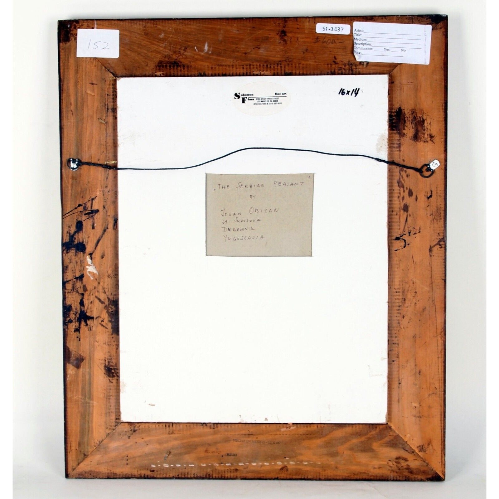 - Handwritten note on verso: THE SERBIAN PEASANT BY JOVAN OBICAN ...acrylic on board