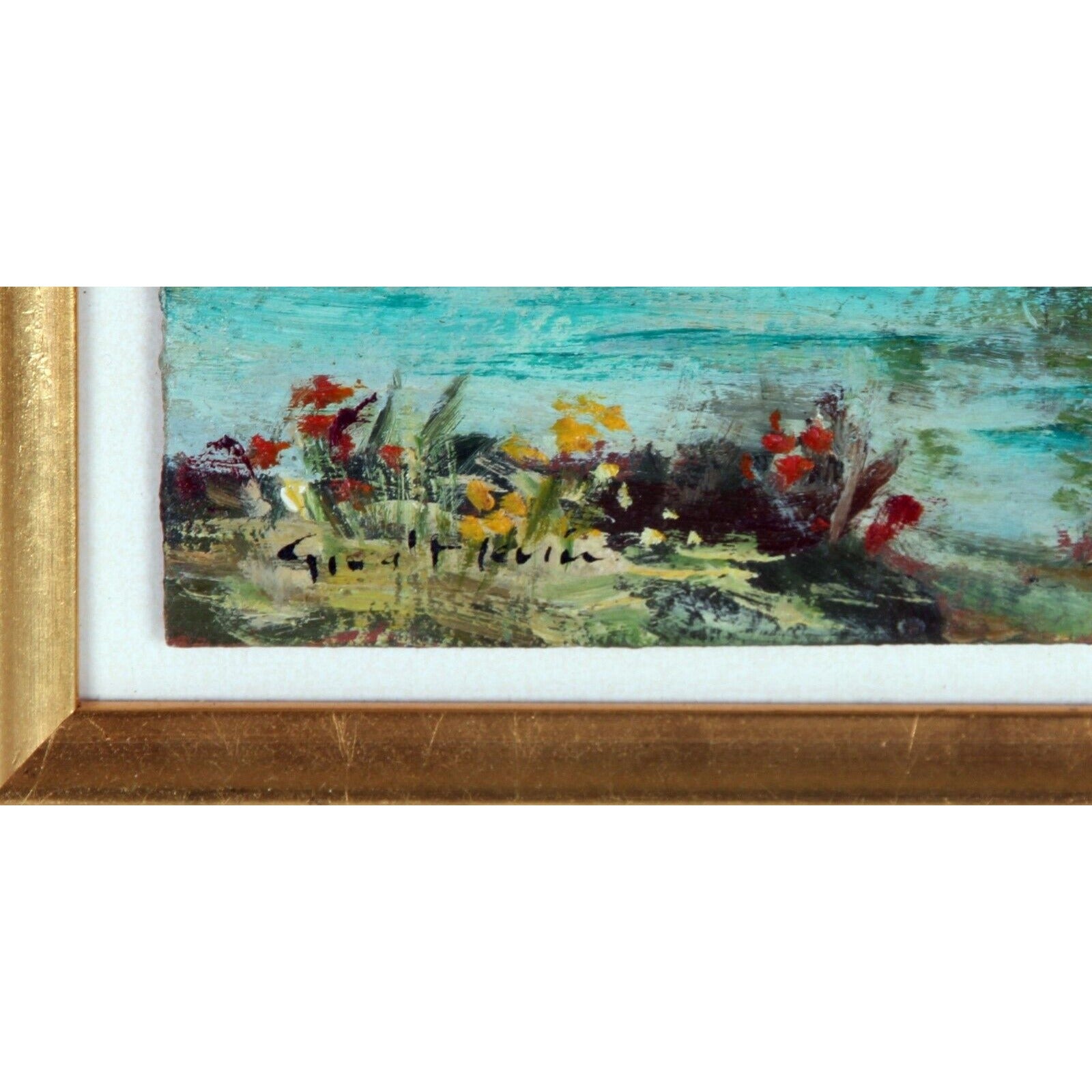 This beautiful painting titled "Lily Pond" by Giralt Lerin is a one-of-a-kind original piece created using oil on board. The painting is framed and measures 4 inches in height and 5 inches in width. The artist's talent is evident in the stunning landscape subject matter, which features a serene lily pond. The painting is signed by the artist and is an excellent addition to any art collection.