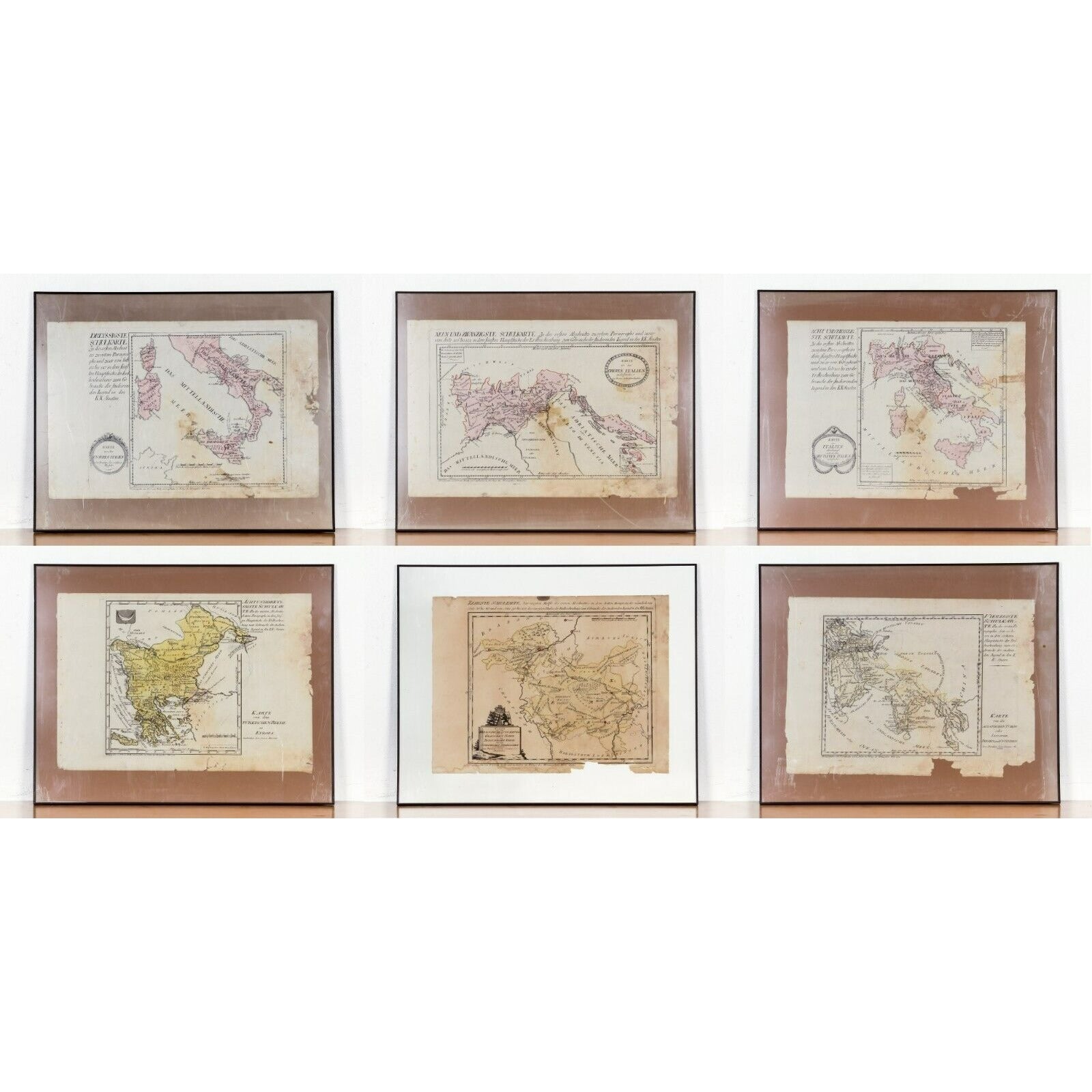 Lot of 6 18th Century Von Reilly European Map Etchings Framed Some Damage