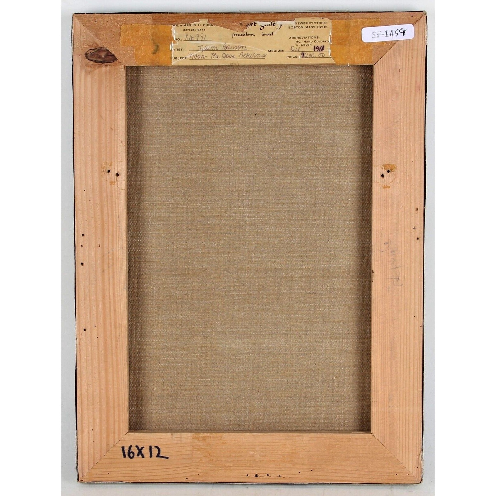 This exquisite painting by Naim Basson depicts the biblical story of Noah and the return of the dove. The artwork is rendered on high-quality canvas using oil paint and measures 16 inches in height and 12 inches in width. The painting is an original piece and is signed by the artist himself.