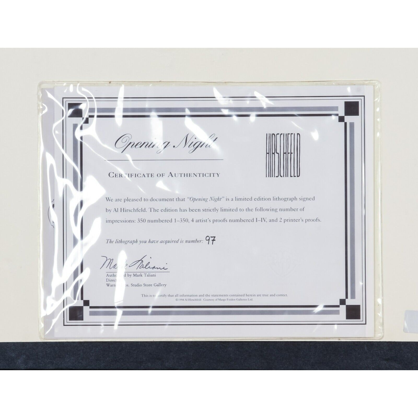 "Opening Night" Al Hirschfeld Signed Original Lithograph LE 97/350