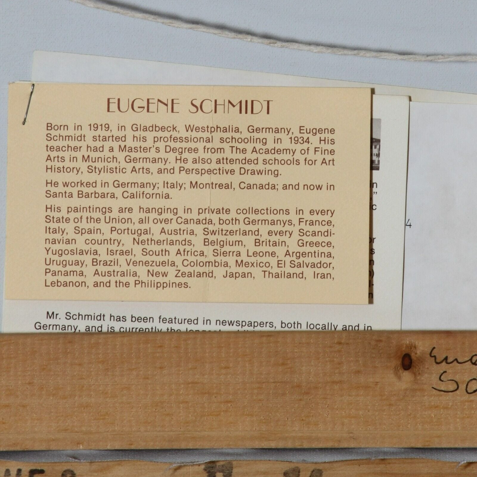 Oil on Canvas by Eugene Schmidt (Initial in Lower right)