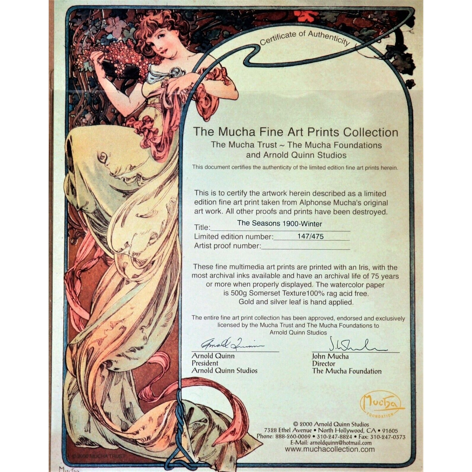 - COA issued by The Mucha Trust / The Mucha Foundation & Arnold Quinn Studios (North Hollywood, CA)