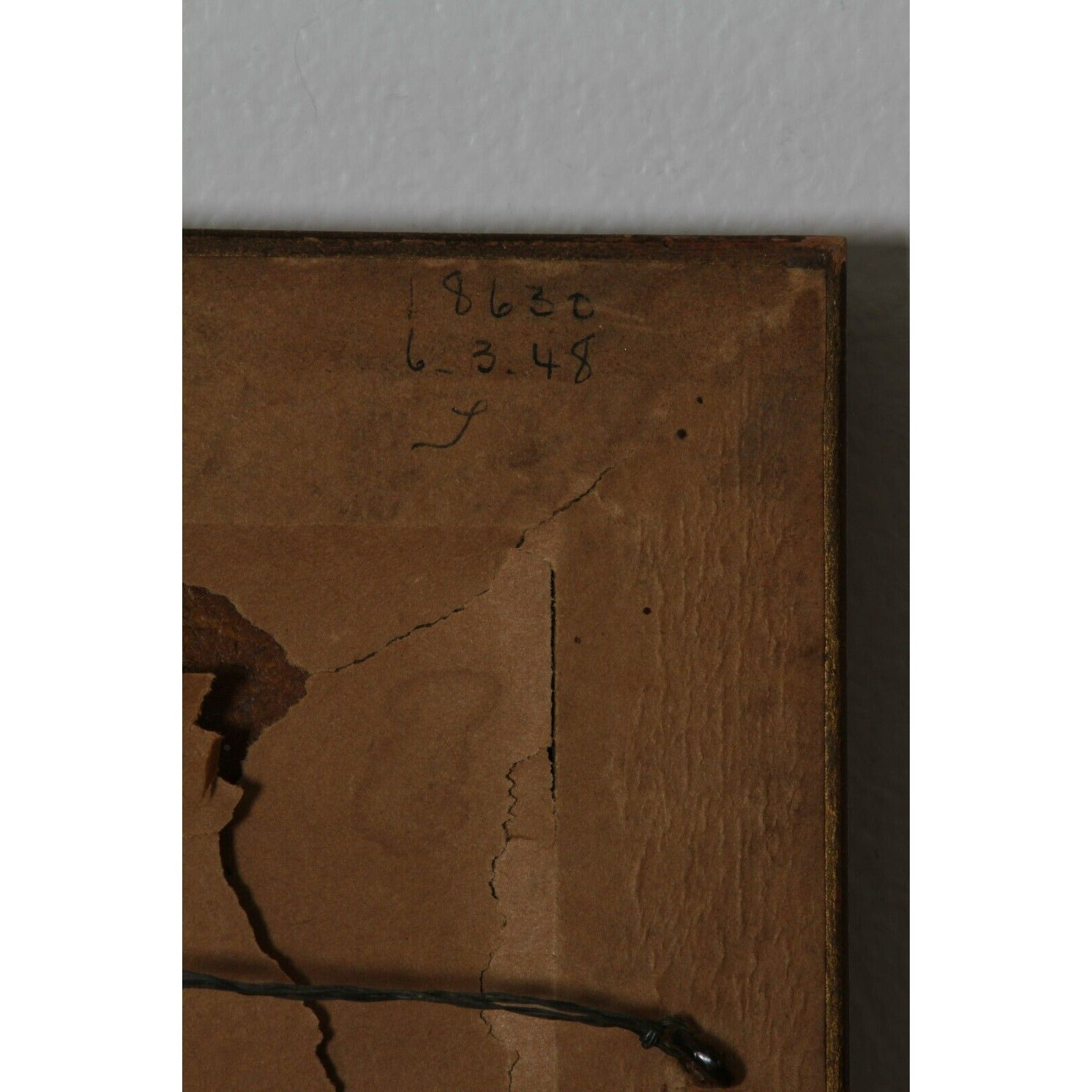 Piece is in Moderate Vintage Condition. Paint has some tobacco stains and a trail of solvent. Minor damage to reverse of frame. See photos for details.
