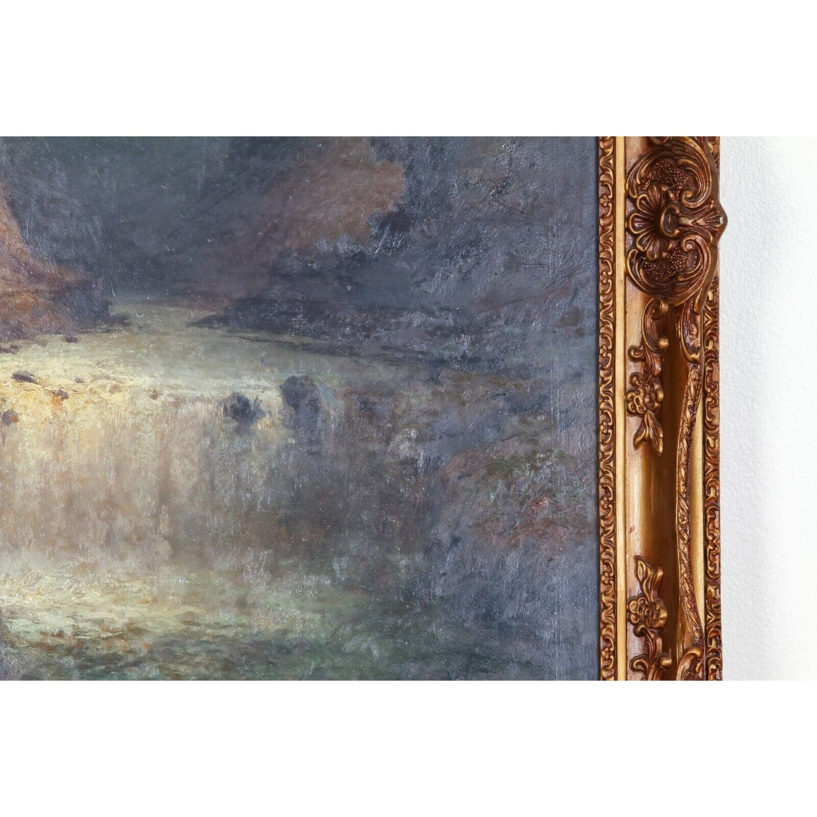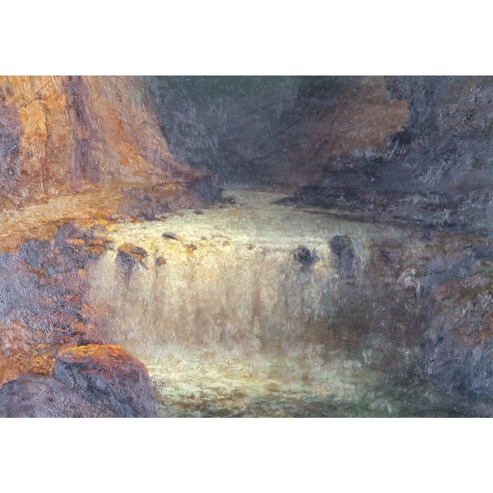 - Features an almost tenebrist storm scene over a waterfall