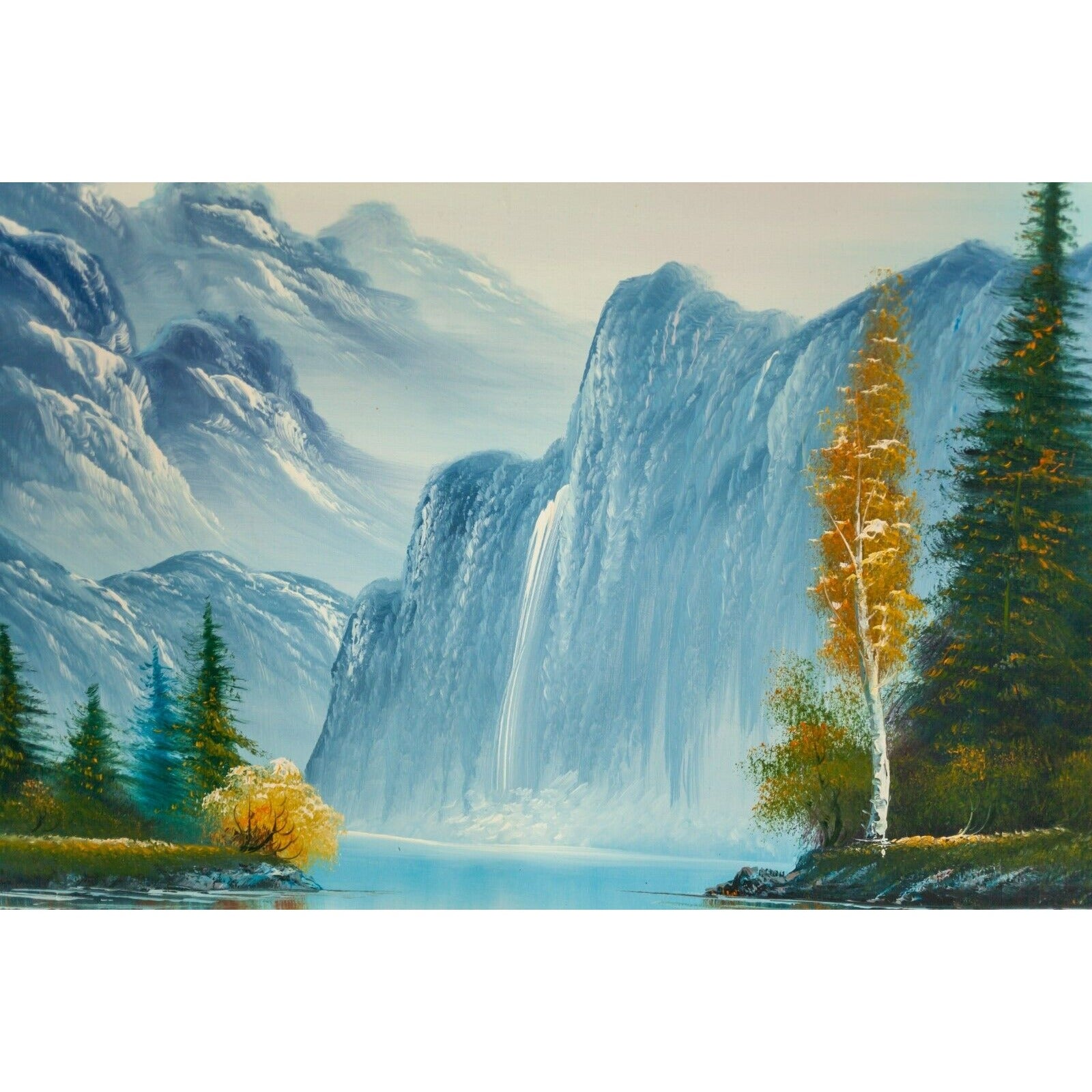 Untitled Mountain Landscape Oil Painting signed R Paul 36" x 24" Unframed