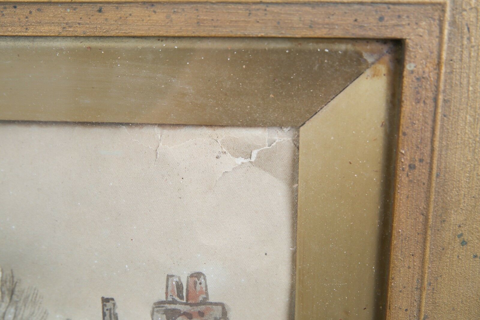 "Untitled" (Village Scene in Winter) Watercolor on Paper, Unknown Artist 21x17"
