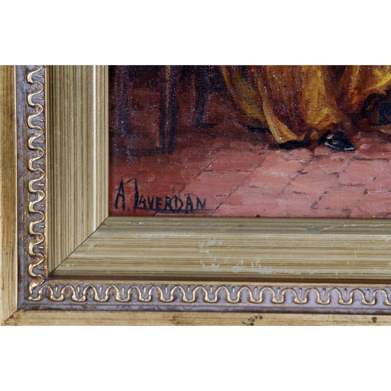 This beautiful painting titled "With the Nanny" is a true masterpiece by the artist A. Laverdan. The piece is an original oil painting on canvas which was produced in the year 1962. The painting is framed and measures 18.5 inches in height and 15.5 inches in width, making it an ideal size for any home or office.